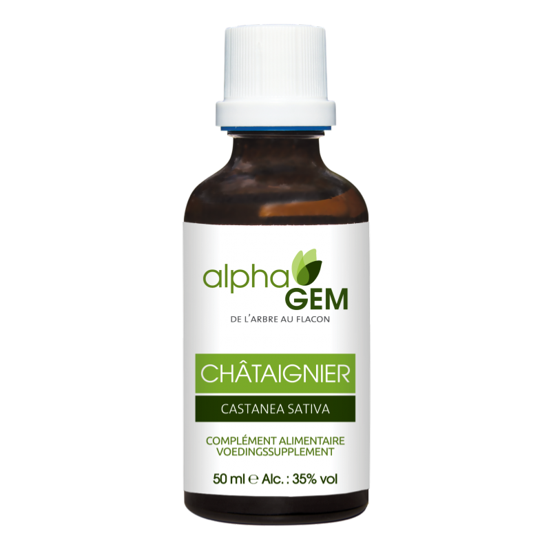 1. Flacon compte-gouttes de 50 ml. Extrait de bourgeons de châtaignier (Castanea sativa).